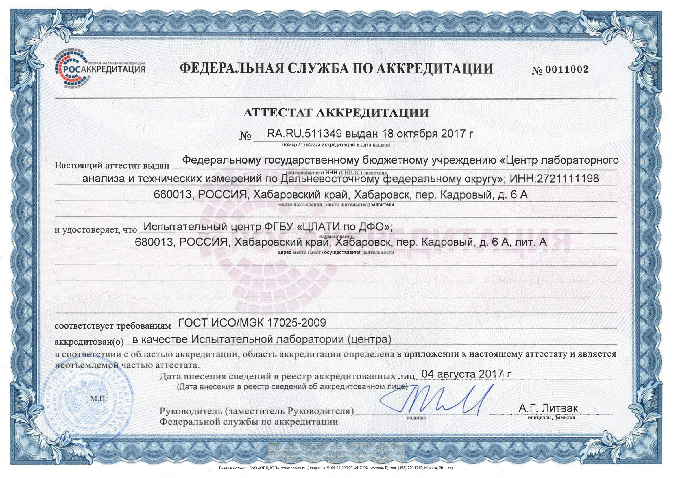 © ФГБУ "Центр лабораторного анализа и технических измерений по Дальневосточному федеральному округу" (ФГБУ "ЦЛАТИ по ДФО")