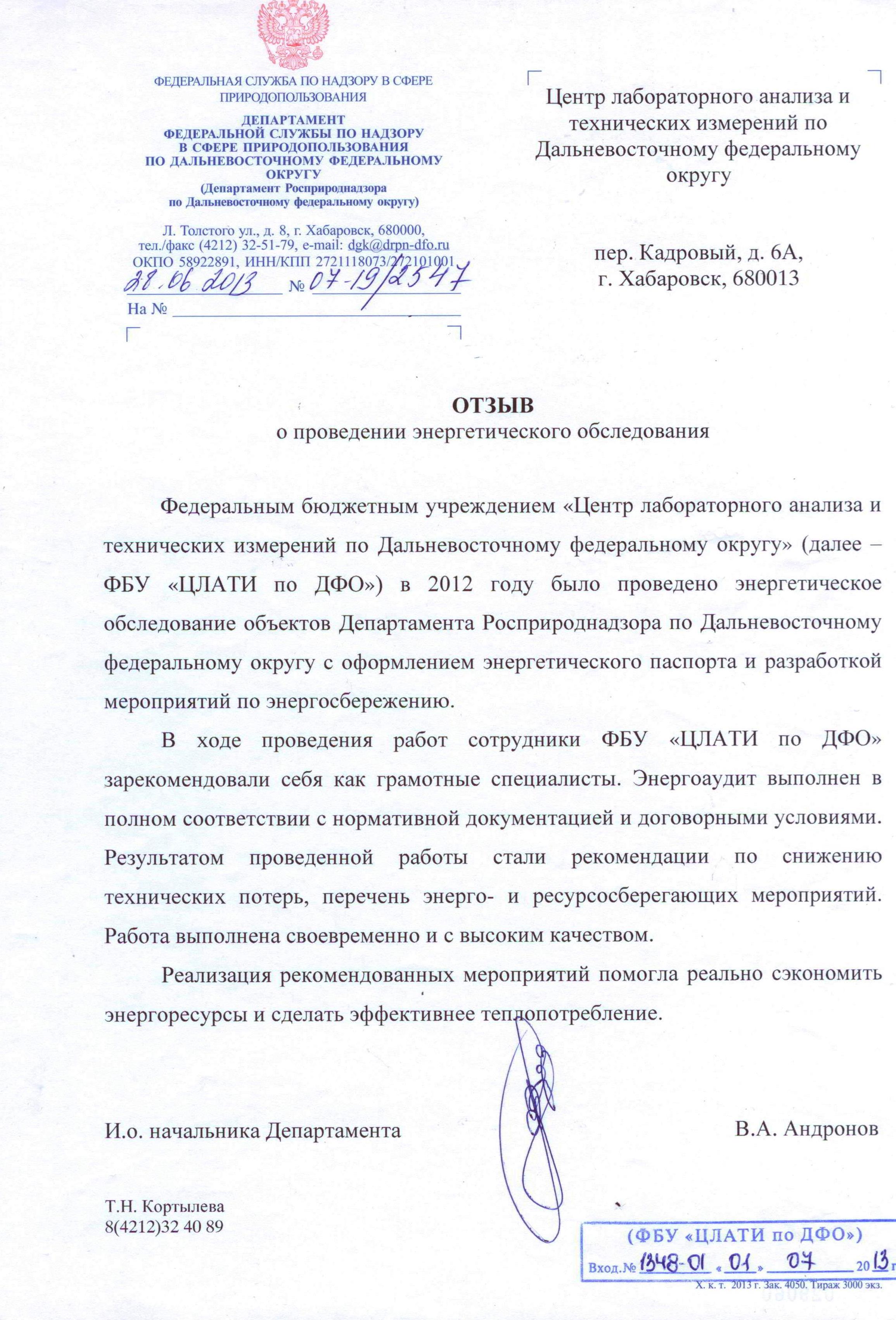 Документы ФГБУ "ЦЛАТИ по ДФО"